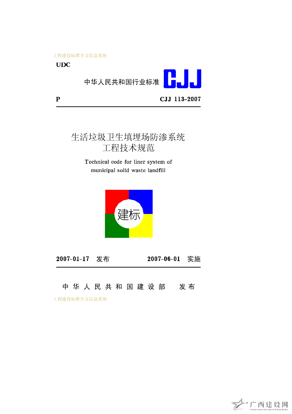 生活垃圾衛(wèi)生填埋場(chǎng)防滲系統(tǒng)工程技術(shù)規(guī)范 CJJ113-2007
