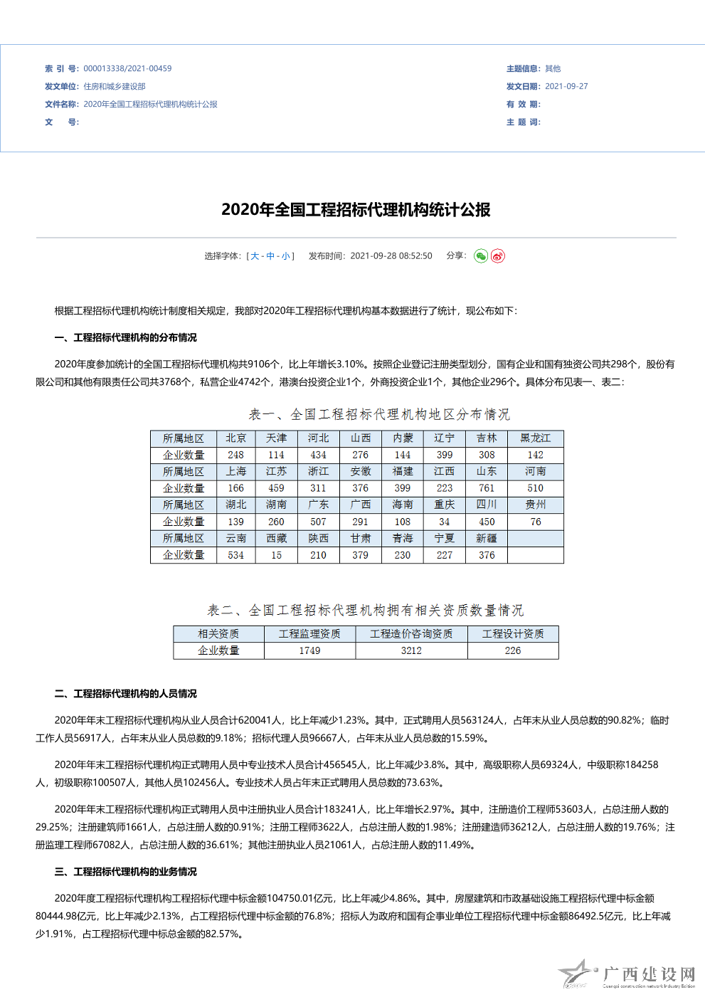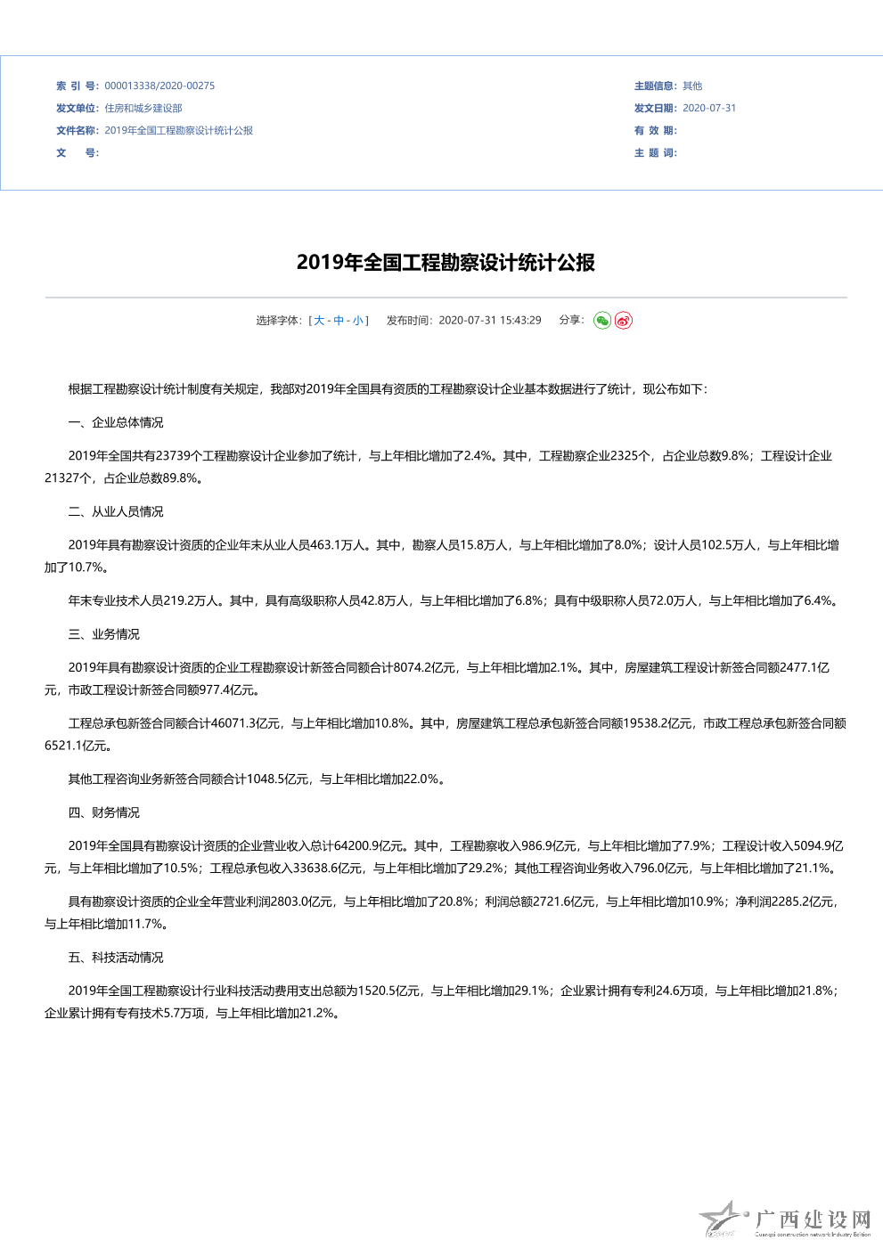 2020年全國工程勘察設計統計公報