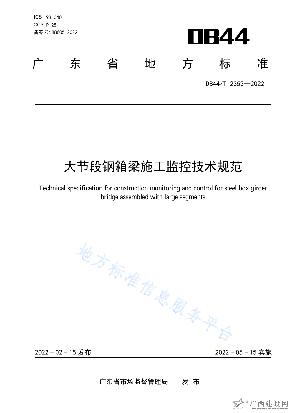 DB44 T2353-2022大節(jié)段鋼箱梁施工監(jiān)控技術(shù)規(guī)范
