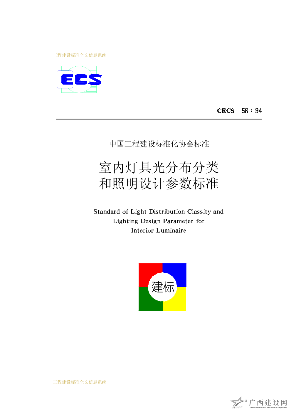 室內(nèi)燈具光分布分類和照明設(shè)計參數(shù)標(biāo)準(zhǔn) ECS56∶94