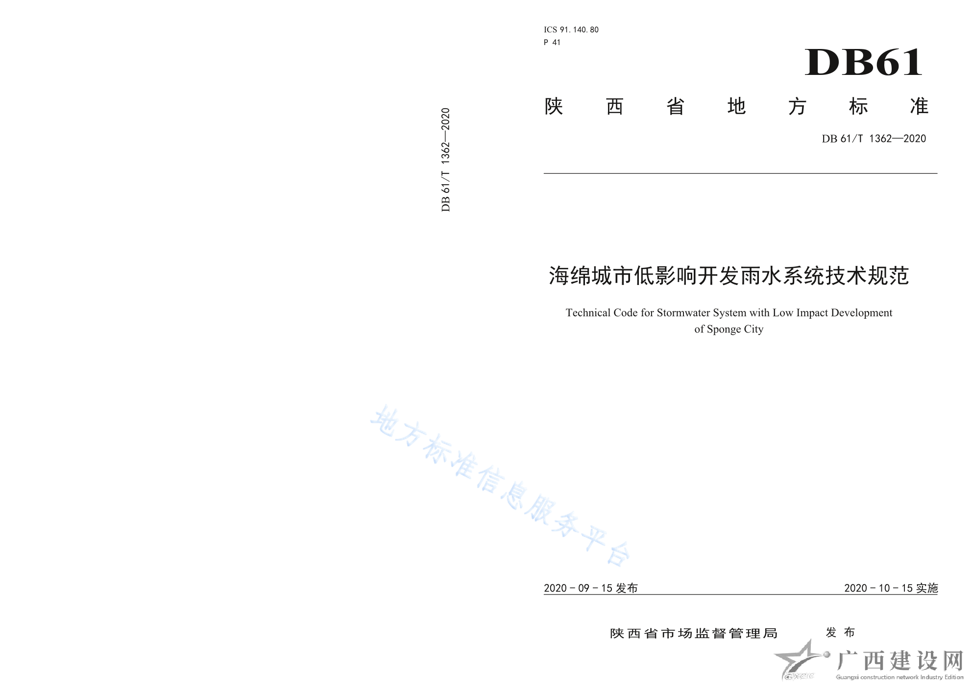 DB61 T1362-2020海綿城市低影響開(kāi)發(fā)雨水系統(tǒng)技術(shù)規(guī)范