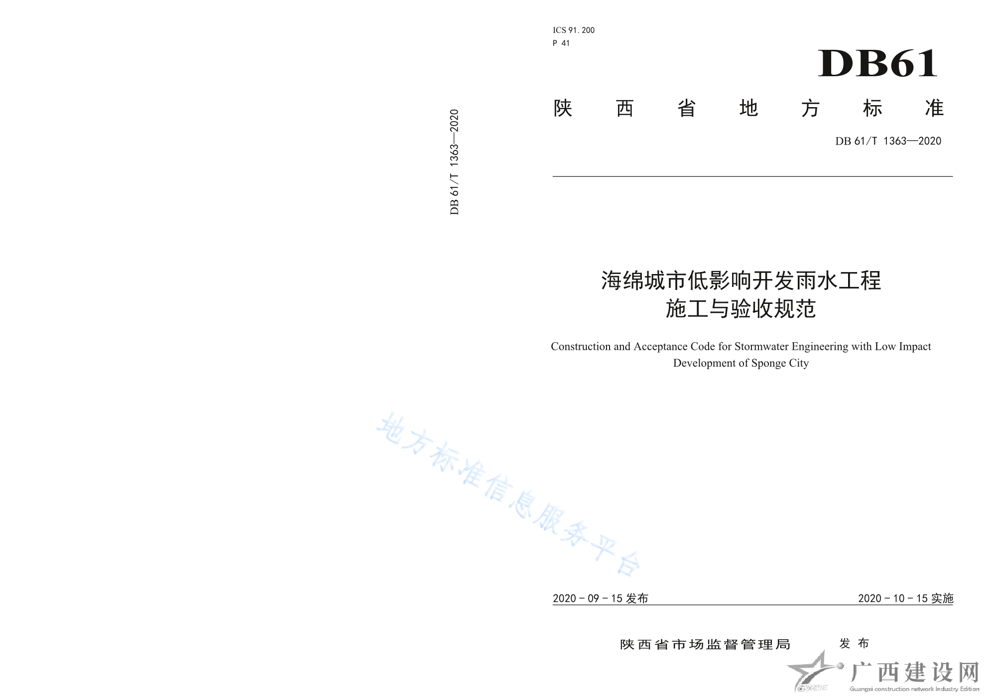 DB61 T1363-2020海綿城市低影響開(kāi)發(fā)雨水工程施工與驗(yàn)收規(guī)范