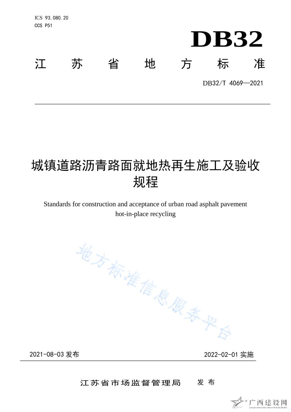DB32 T4352-2022城鎮道路瀝青路面廠拌熱再生施工技術規程