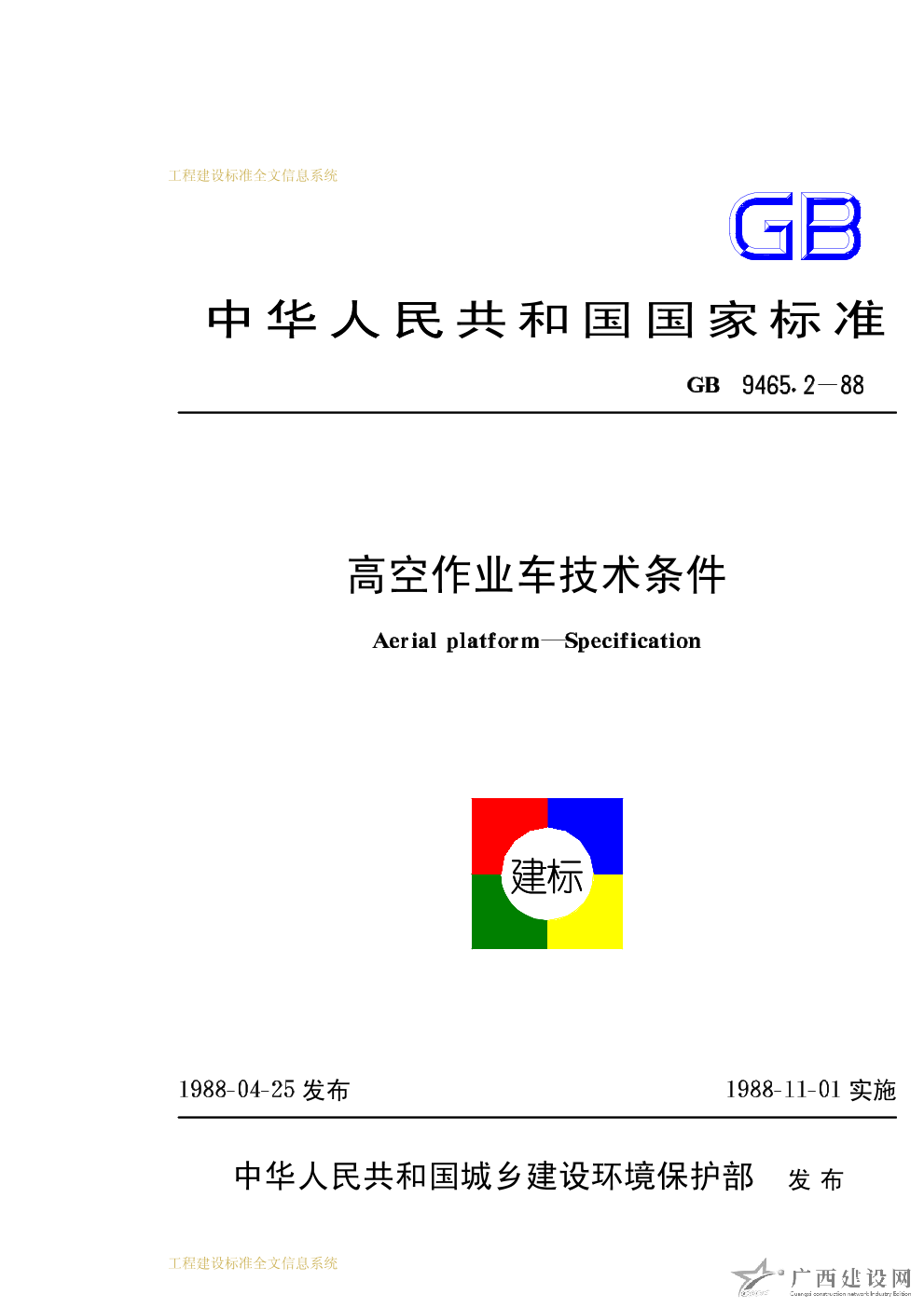 桅柱式高空作業平臺 JG/T5103—1998