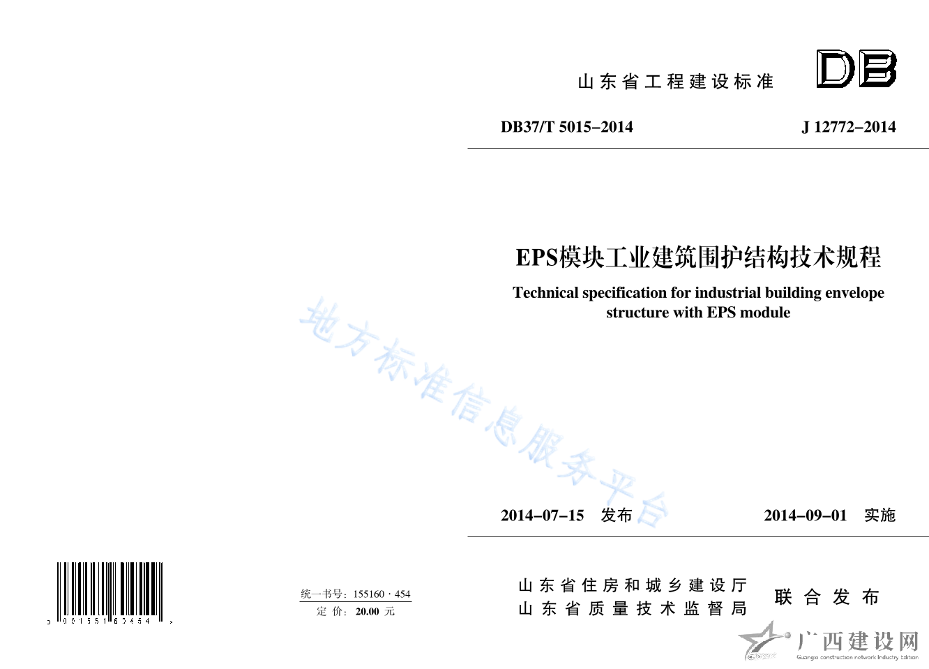 DB37 T5015-2014EPS模塊工業(yè)建筑圍護(hù)結(jié)構(gòu)技術(shù)規(guī)程
