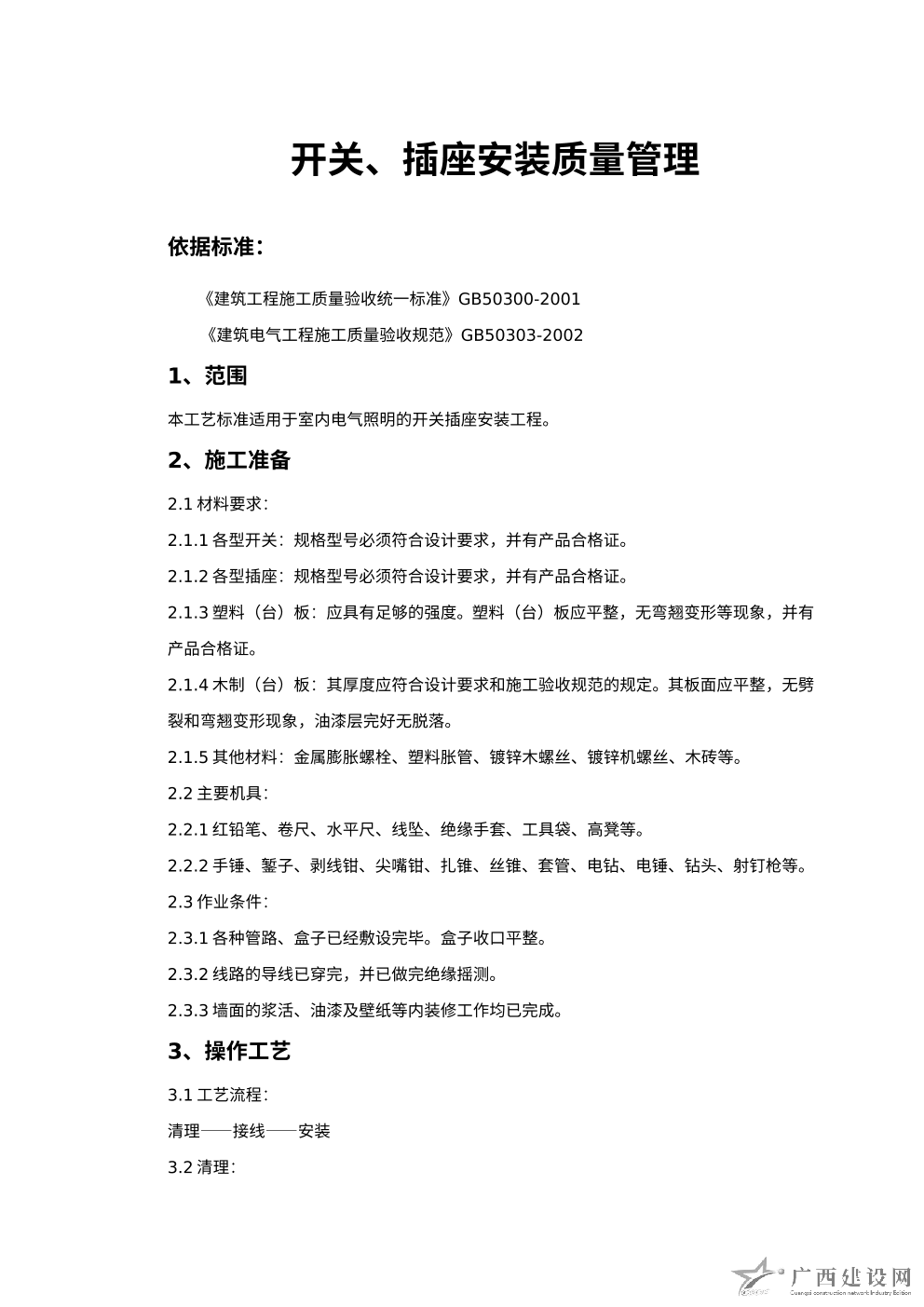 開關(guān)、插座安裝工程