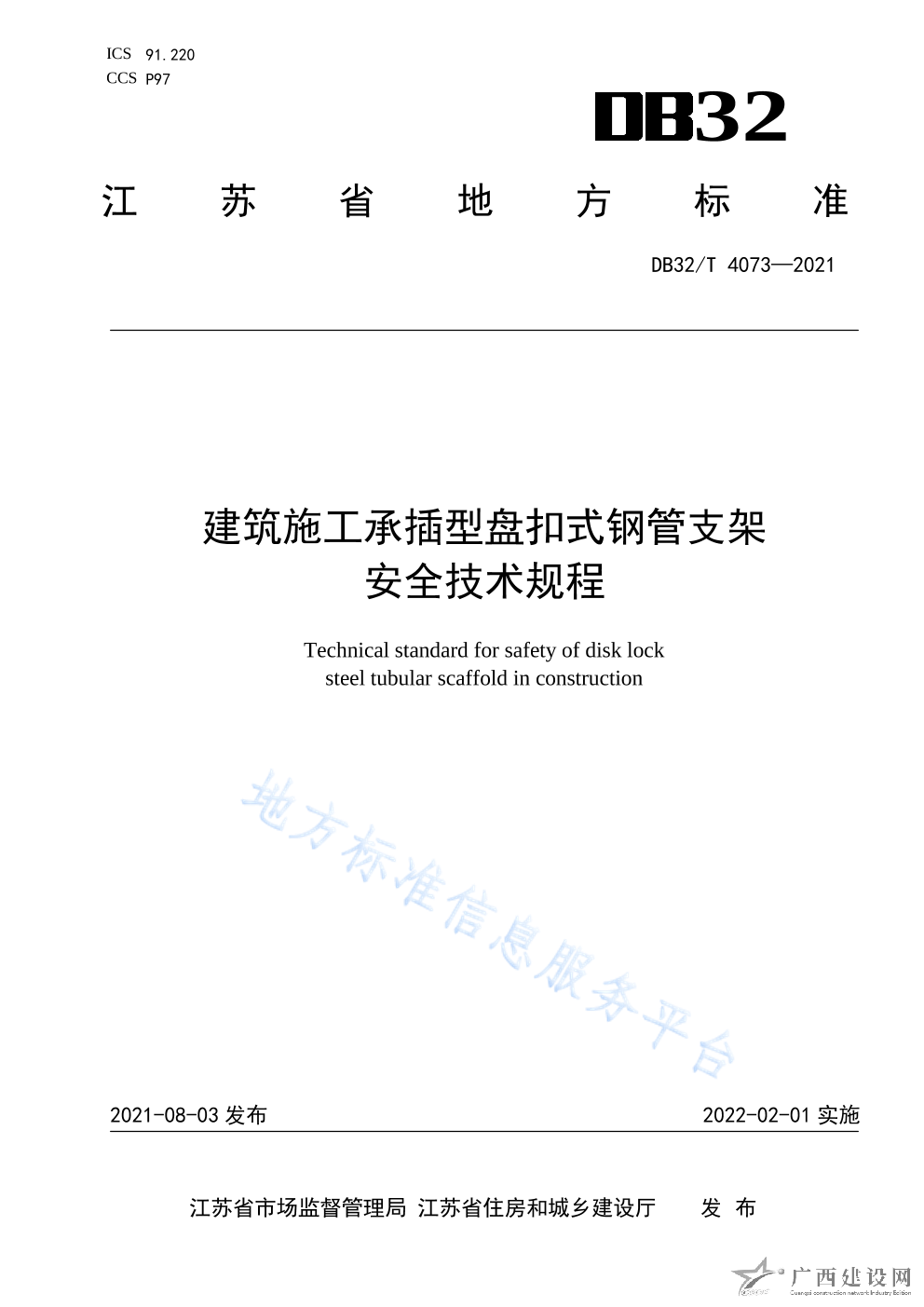 DB32 T4073-2021建筑施工承插型盤扣式鋼管支架安全技術規程
