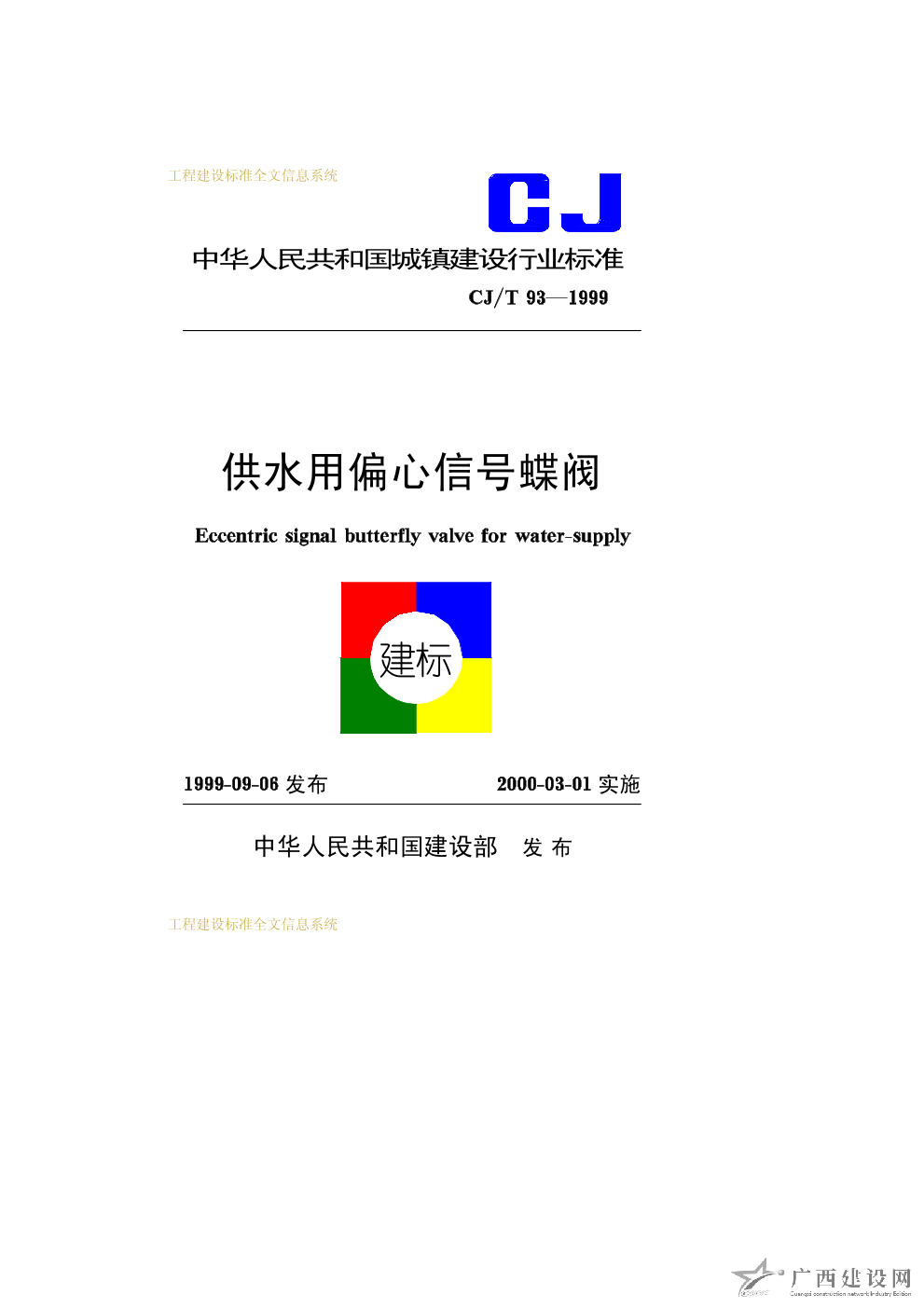 供熱用偏心蝶閥 CJ/T92—1999
