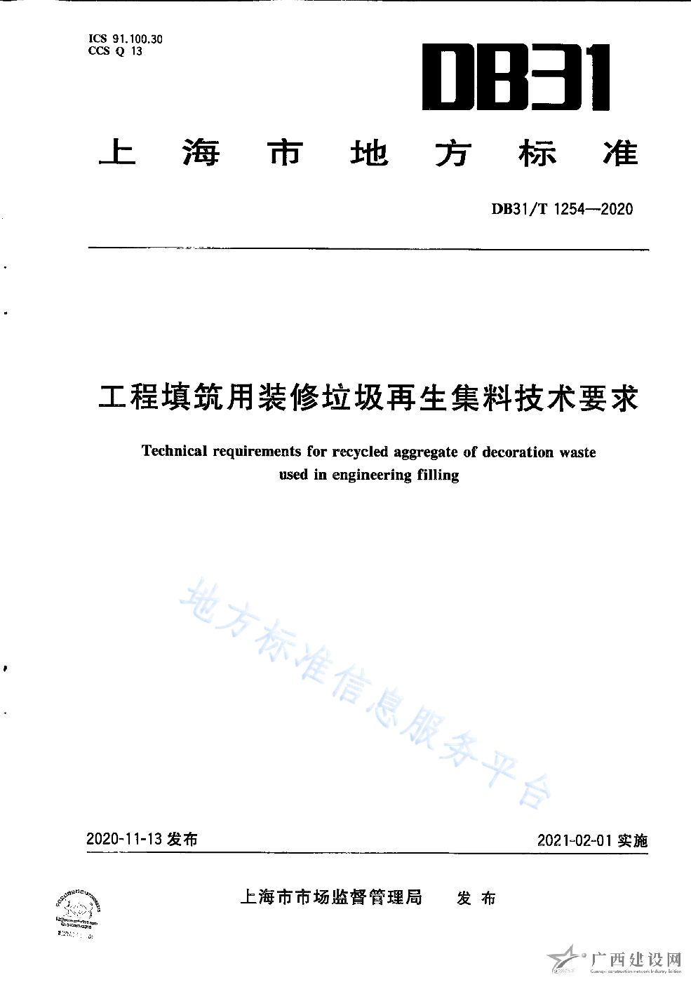 DB31 T1254-2020工程填筑用裝修垃圾再生集料技術(shù)要求