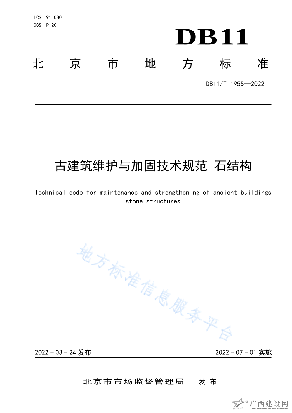 DB11 T+1955-2022古建筑維護與加固技術規范 石結構