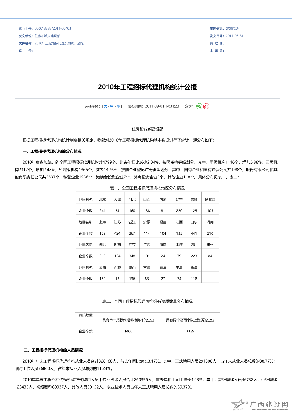 2010年工程造價咨詢統計公報