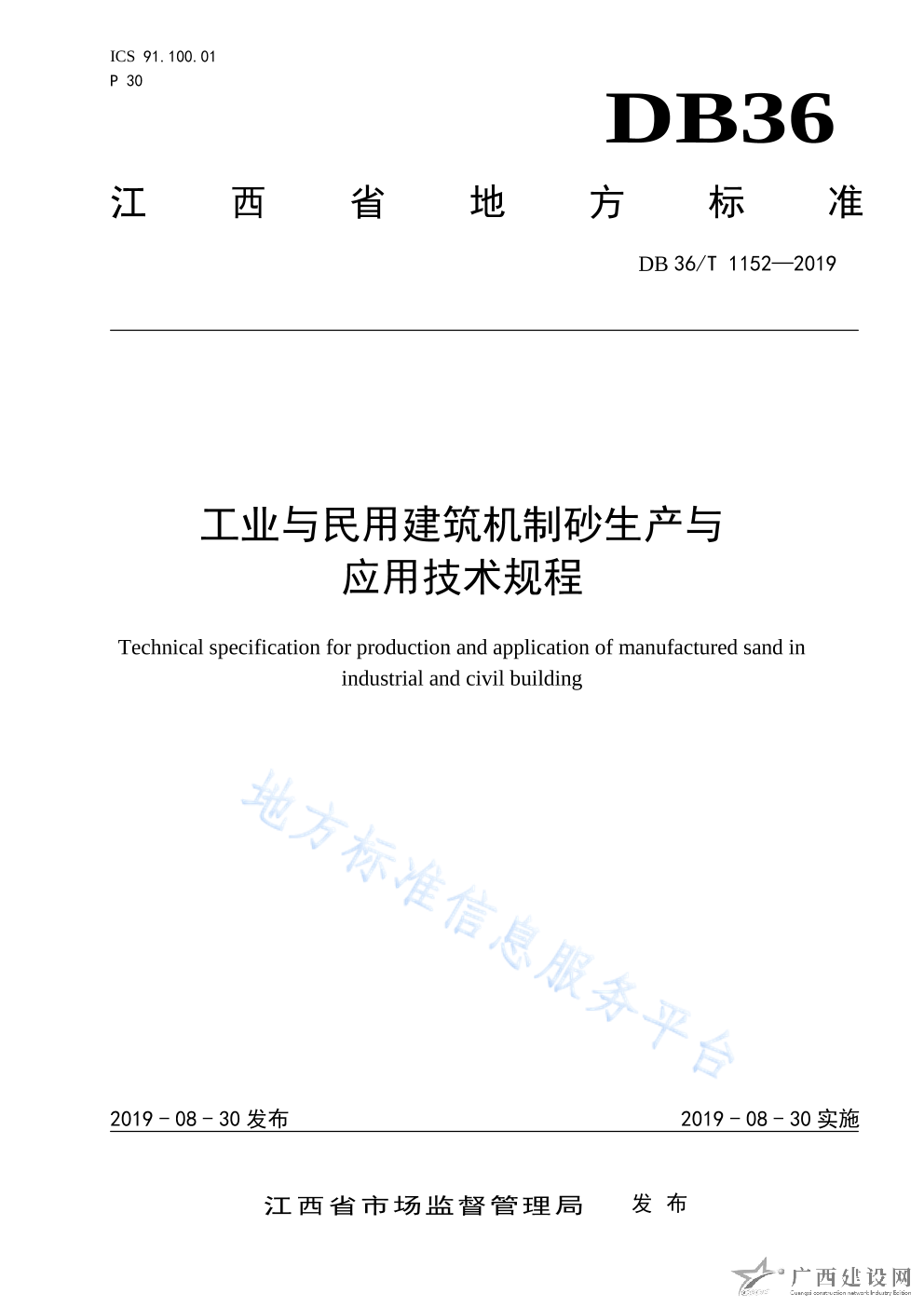 DB36 T1153-2019公路水運工程混凝土用機制砂生產與應用技術規程