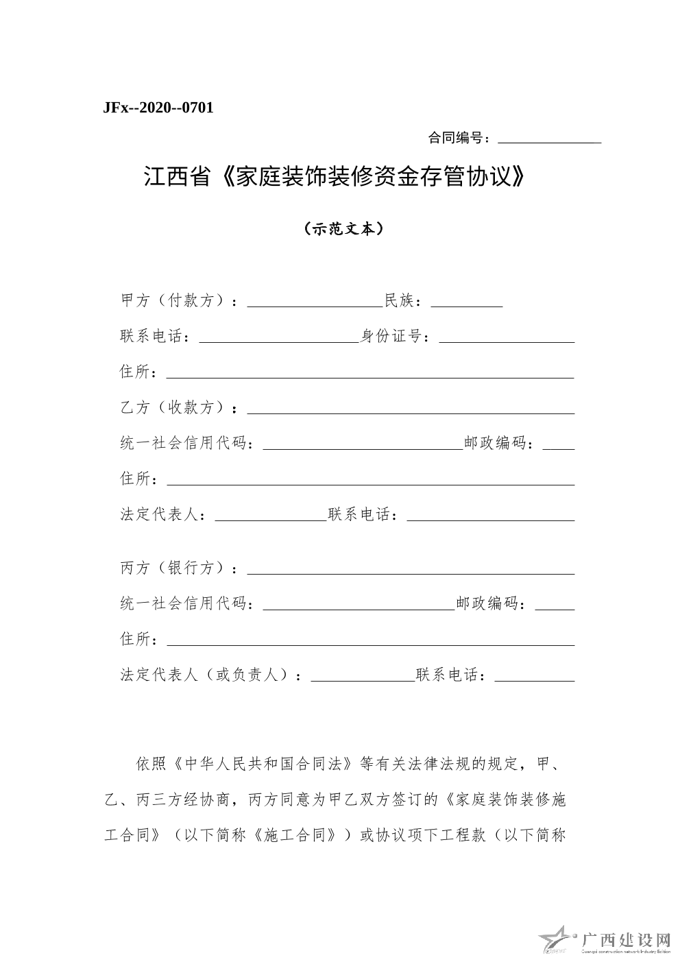 呼和浩特市家庭裝飾裝修工程施工合同(示范文本)