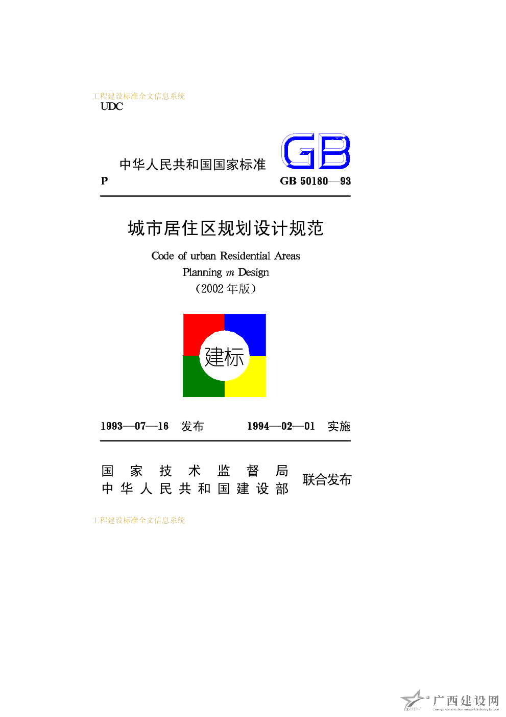 城市居住區(qū)規(guī)劃設(shè)計(jì)規(guī)范 GB50180—93