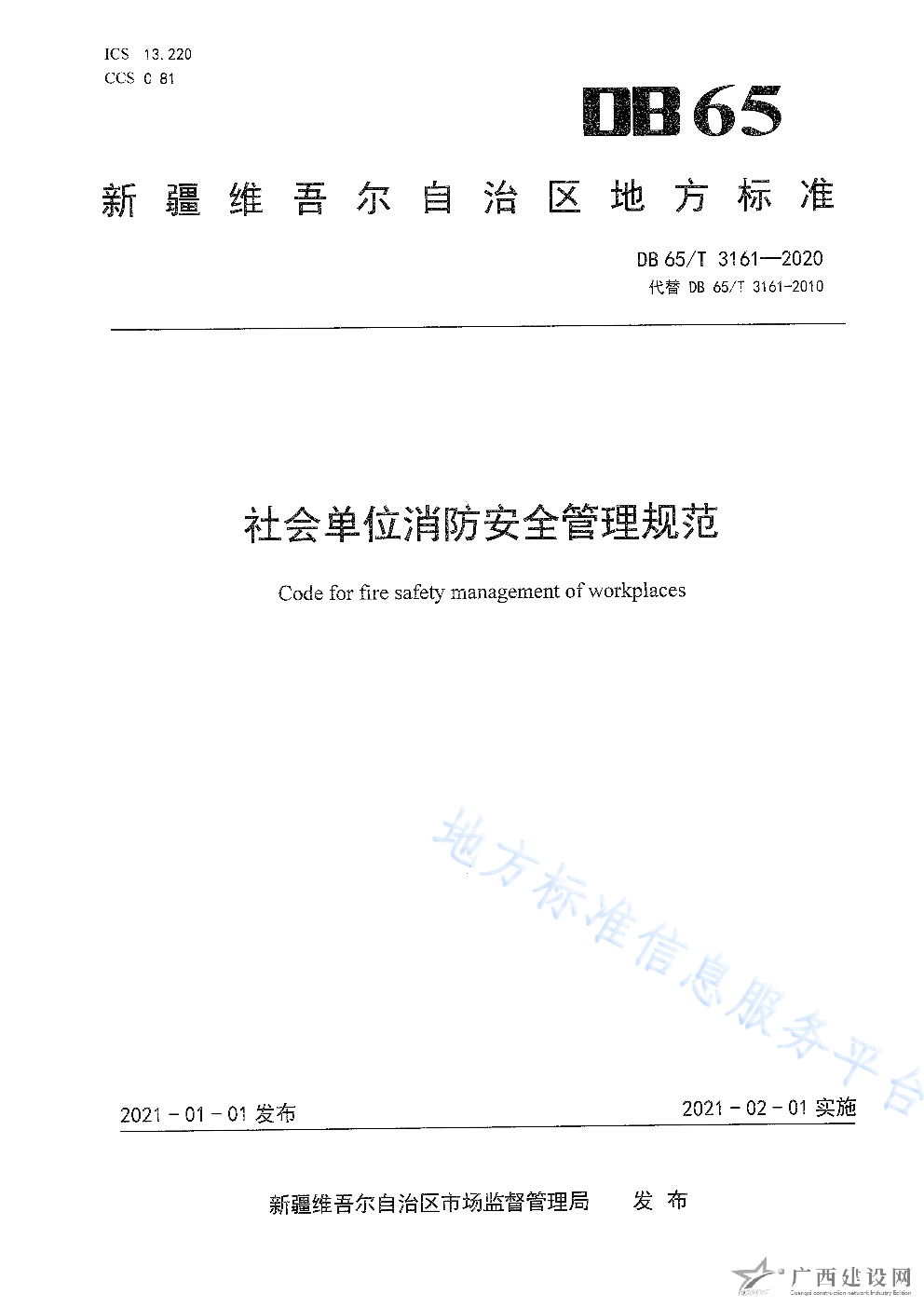 DB65 T3161-2020社會(huì)單位消防安全管理規(guī)范