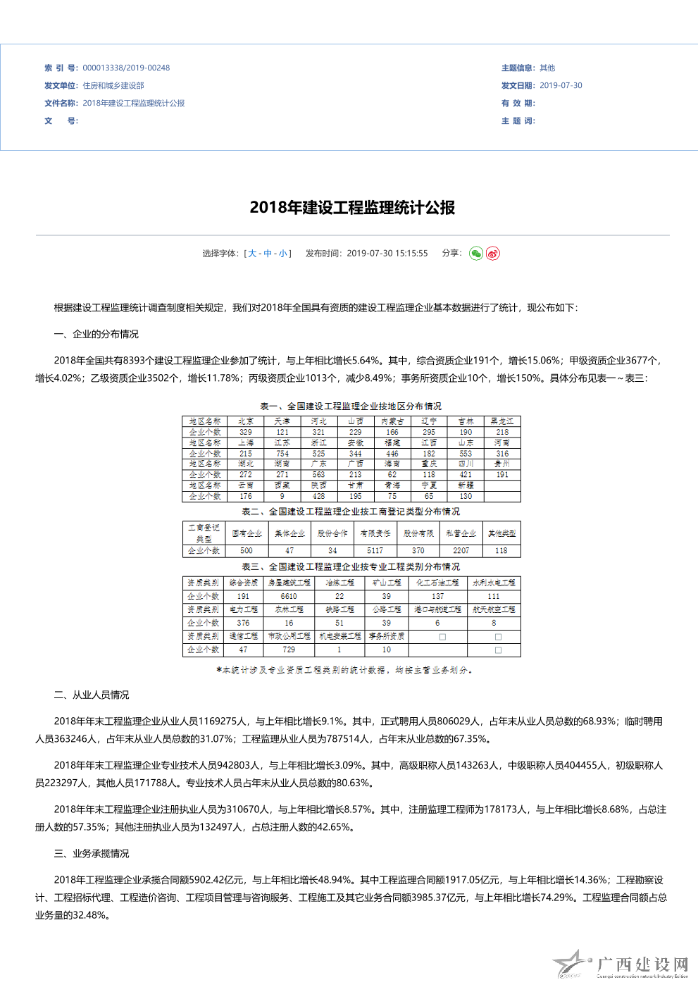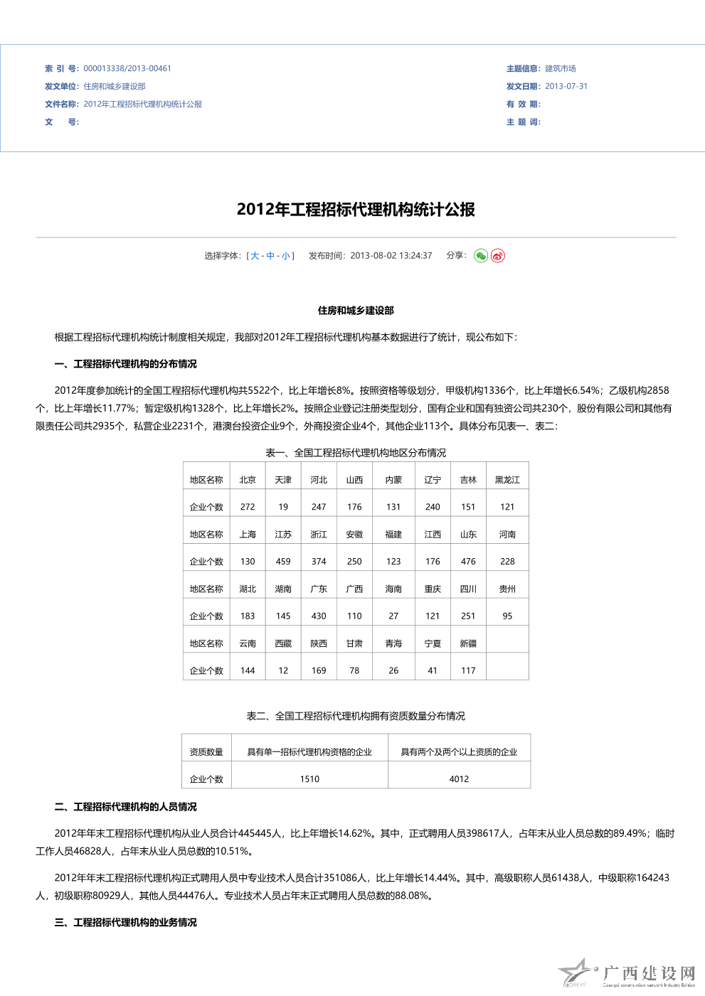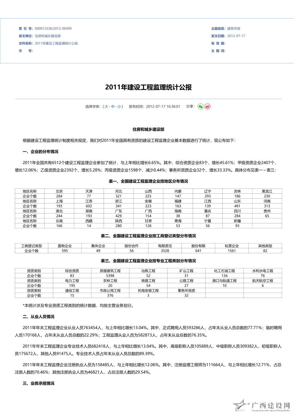 2012年全國建設工程監(jiān)理統(tǒng)計公報