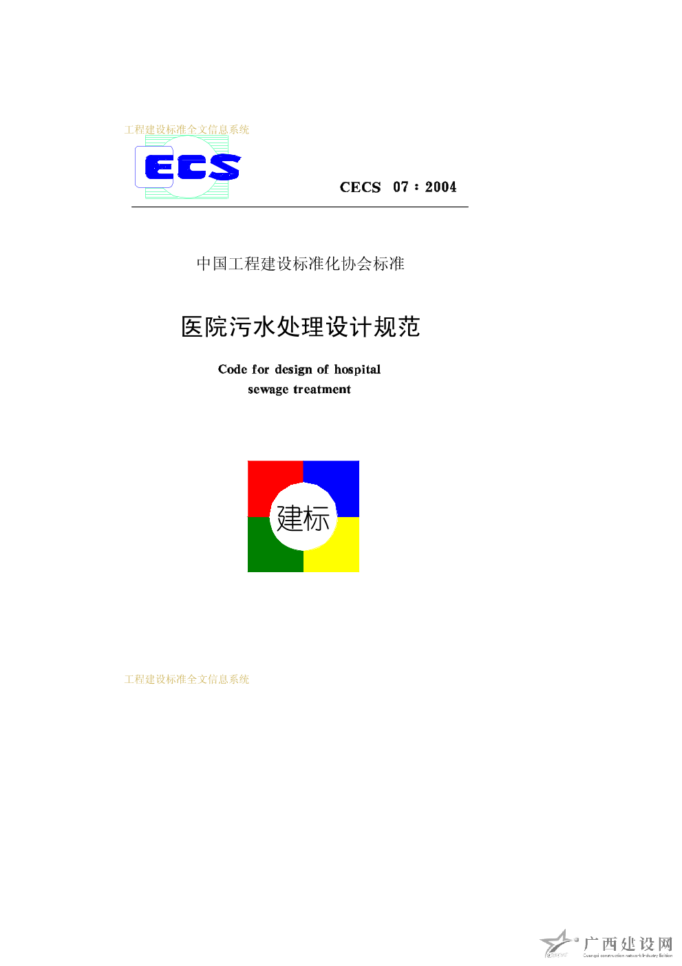 醫(yī)院污水處理設(shè)計(jì)規(guī)范 CECS07∶2004