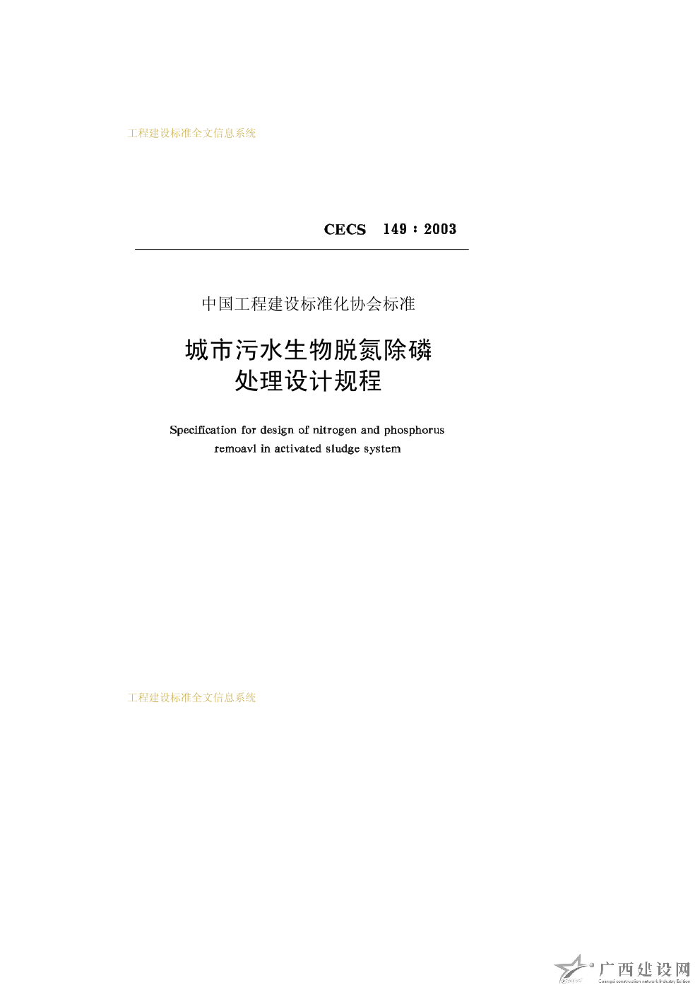 城市污水生物脫氮除磷處理設(shè)計(jì)規(guī)程 CECS149∶2003