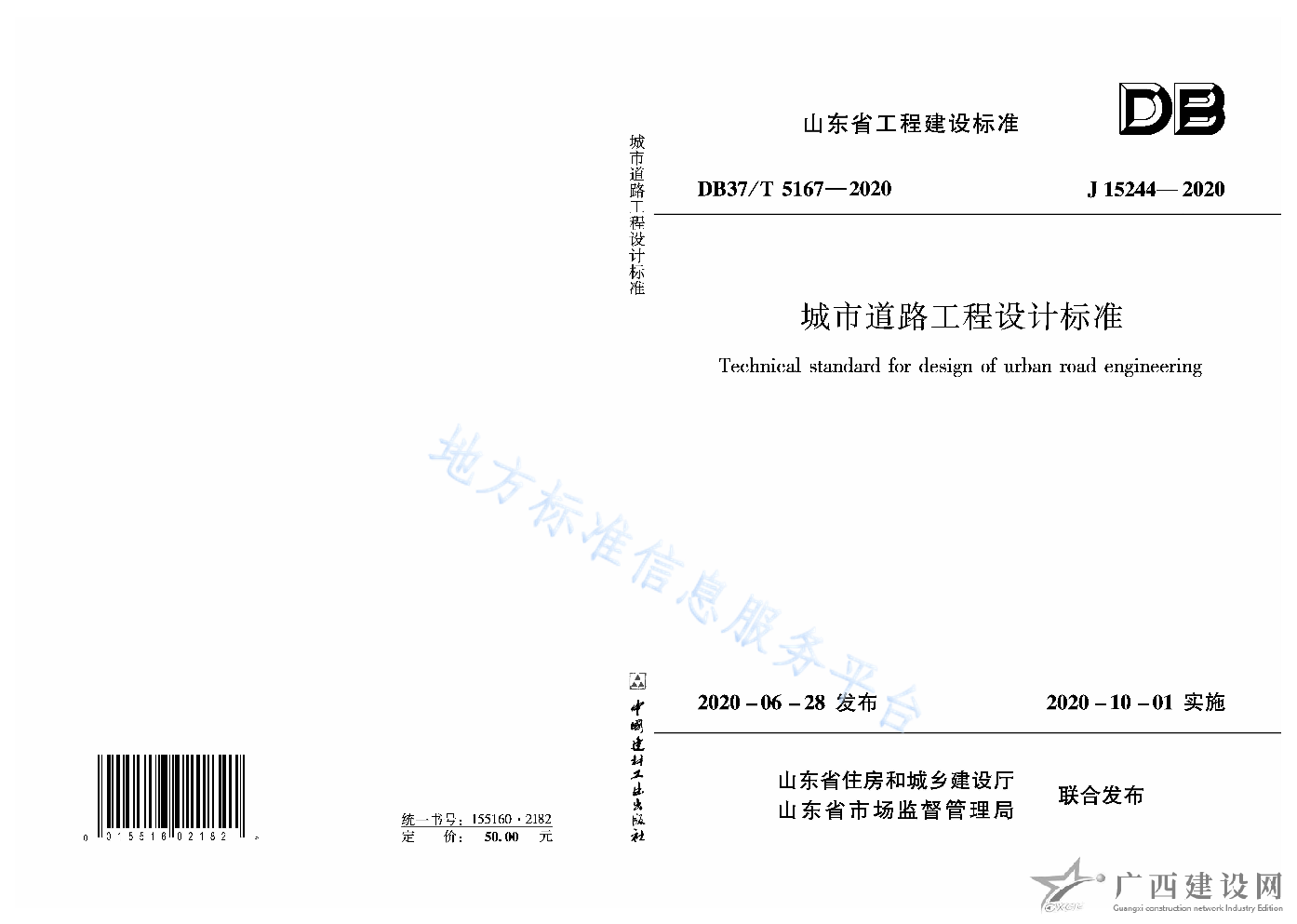 DB37T5167-2020城市道路工程設(shè)計標(biāo)準(山東省市場監(jiān)督管理局)
