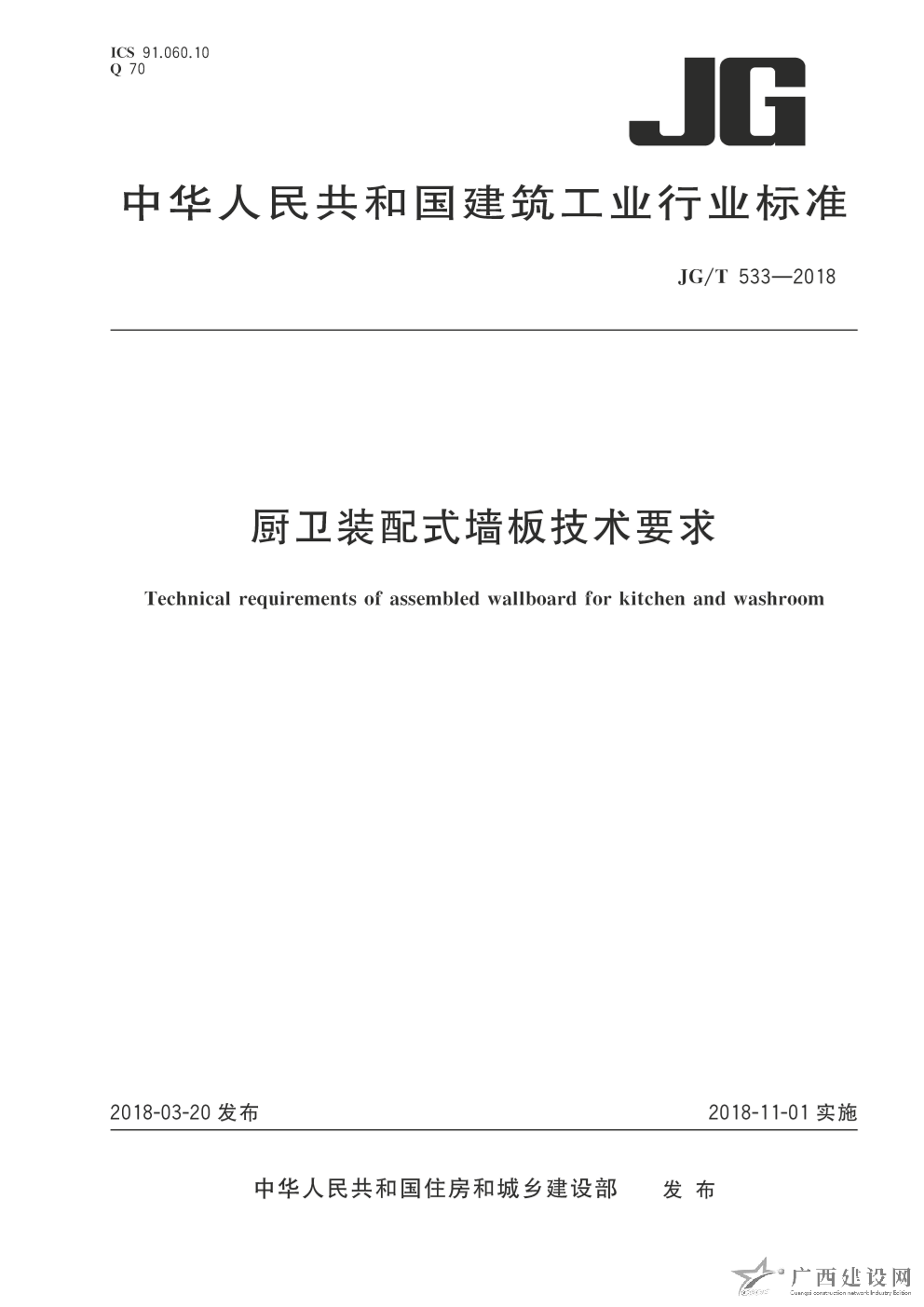 JG-T533-2018:廚衛(wèi)裝配式墻板技術(shù)要求