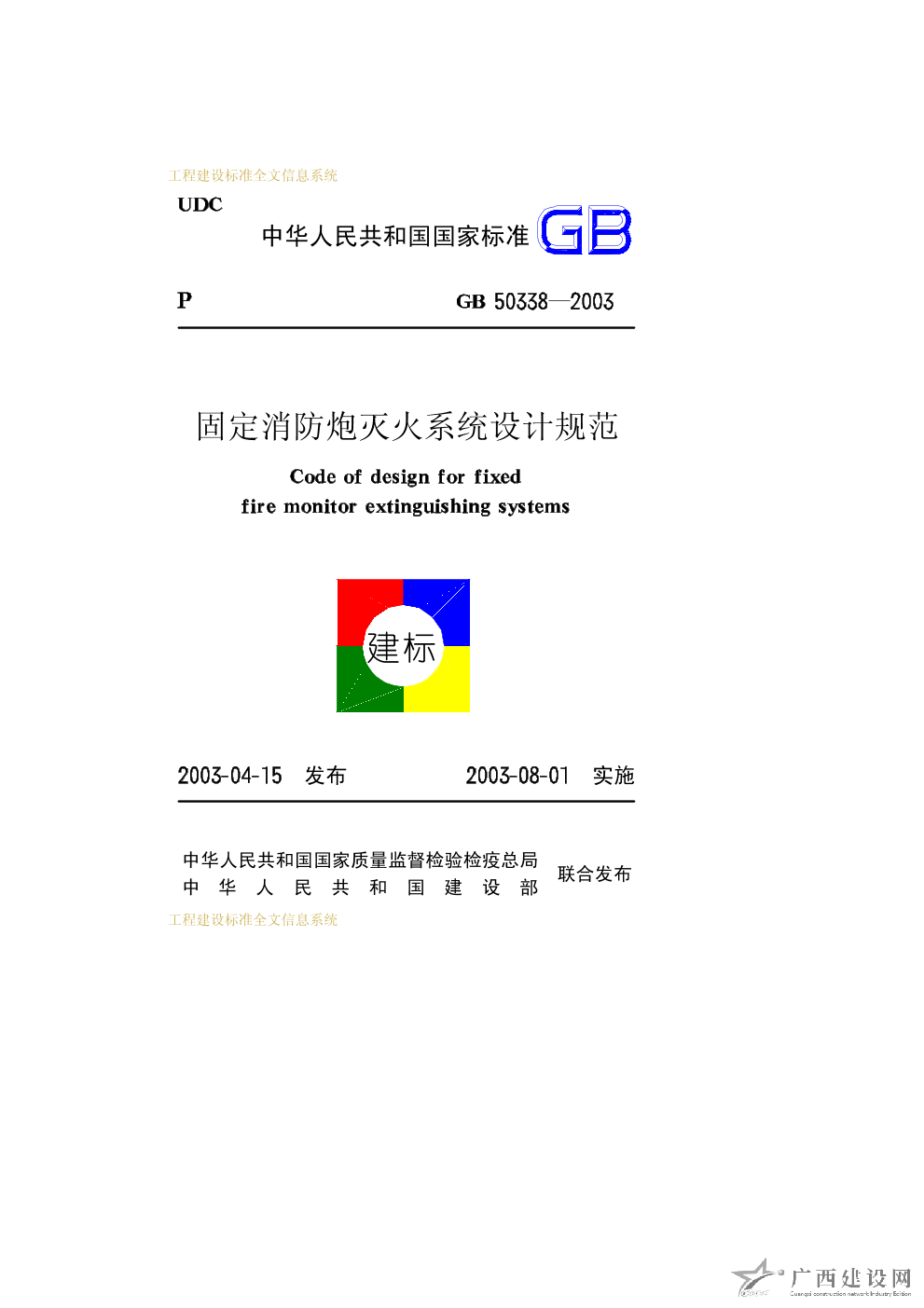 固定消防炮滅火系統設計規范 GB50338-2003