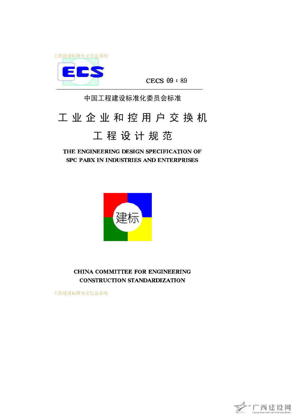 工業企業和控用戶交換機工程設計規范 CECS09∶89
