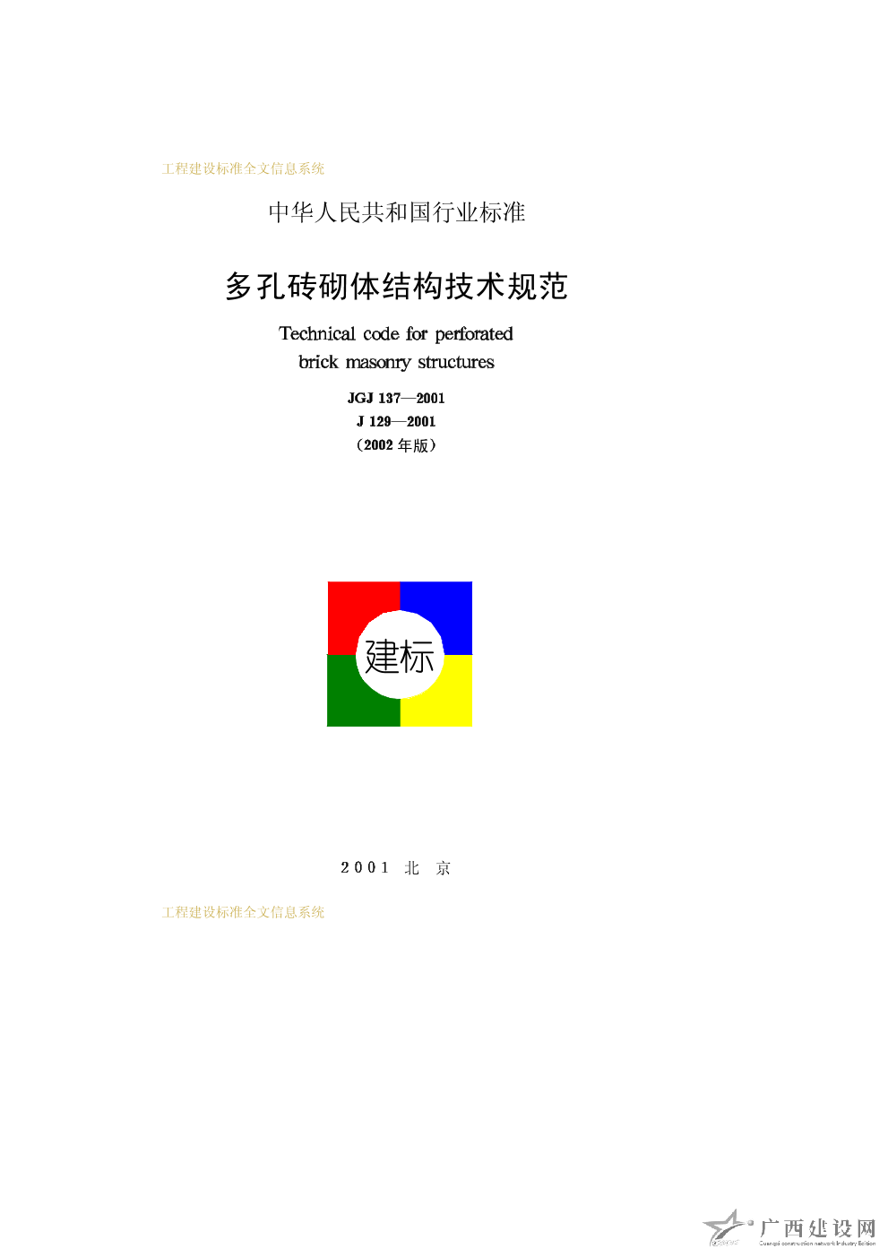 多孔磚砌體結構技術規范 JGJ137—2001