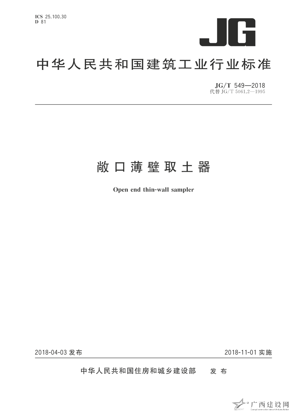 JG-T549-2018:敞口薄壁取土器