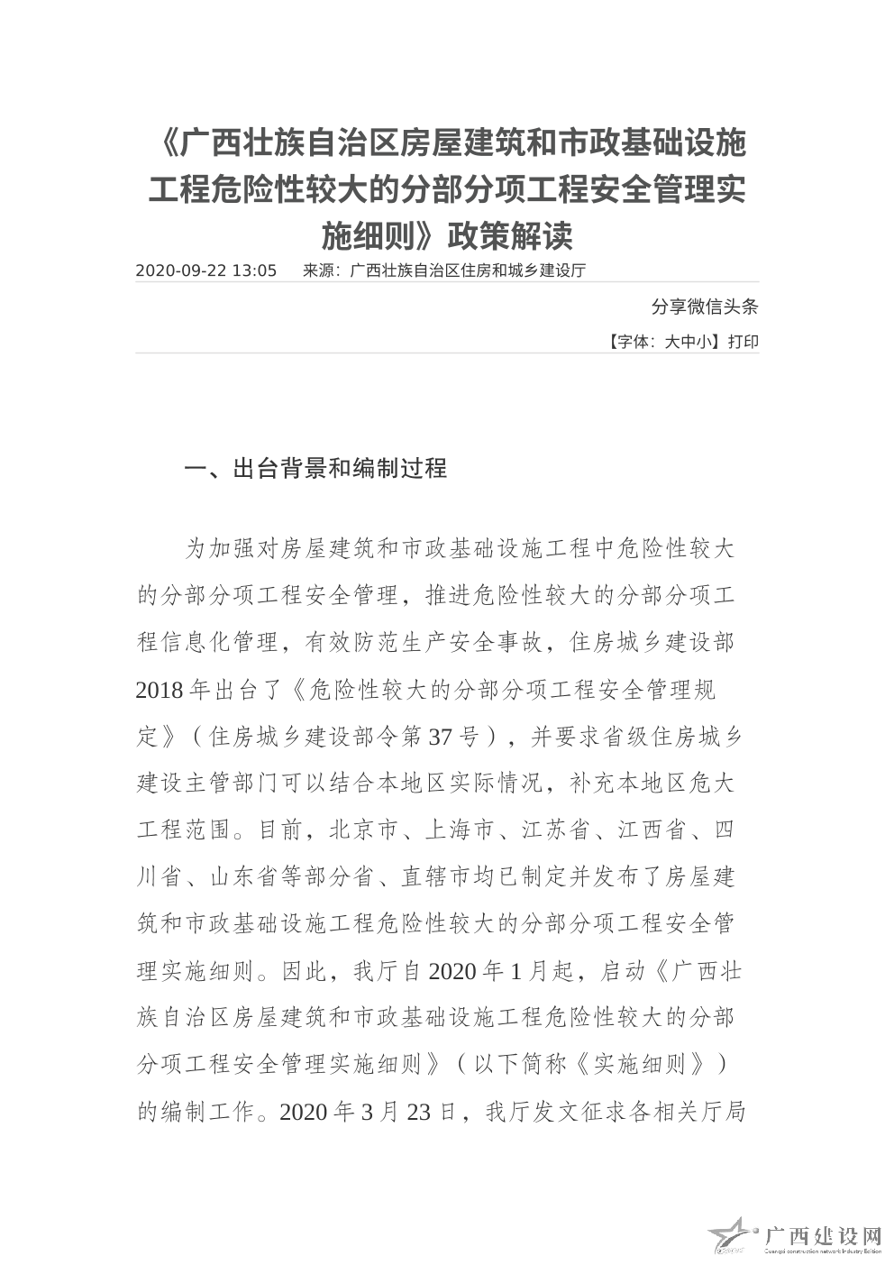 《廣西房屋建筑和市政基礎設施工程質量安全手冊實施細則》政策解讀材料