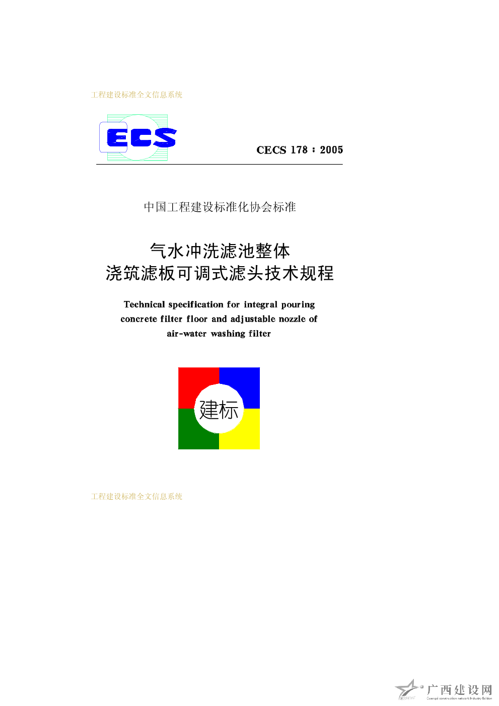氣水沖洗濾池整體澆筑濾板可調(diào)式濾頭技術(shù)規(guī)程 CECS178-2005