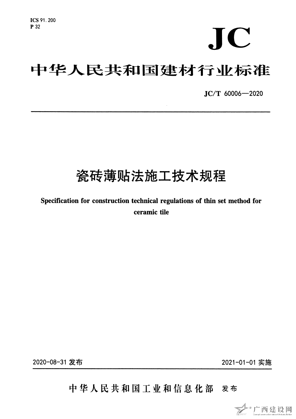 JC T60006-2020 瓷磚薄貼法施工技術(shù)規(guī)程