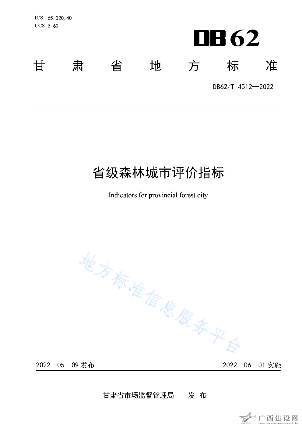 DB62 T4512-2022省級(jí)森林城市評(píng)價(jià)指標(biāo)