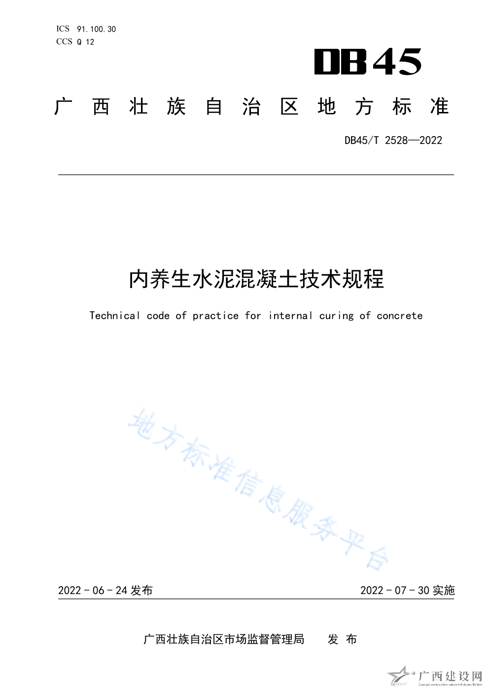 DB45T+2528-2022+內(nèi)養(yǎng)生水泥混凝土技術(shù)規(guī)程