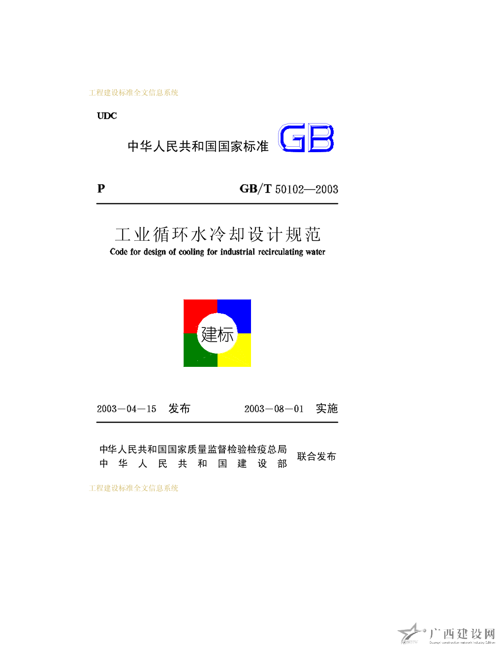 工業(yè)循環(huán)水冷卻設(shè)計(jì)規(guī)范 GB/T50102-2003