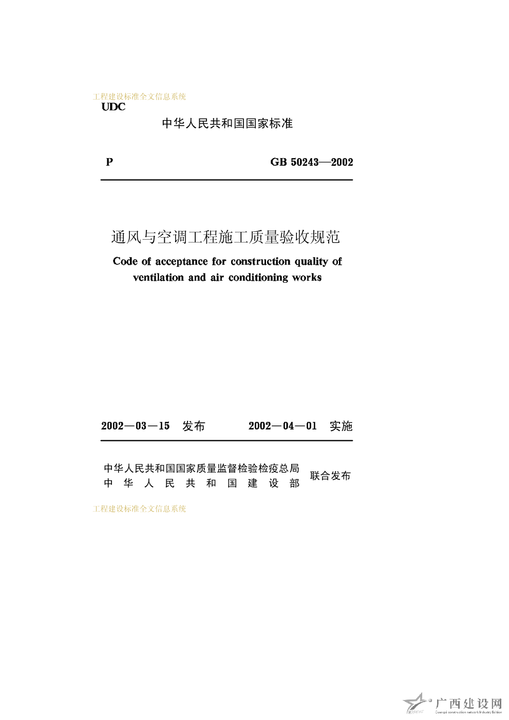 通風與空調工程施工質量驗收規范 GB50243—2002