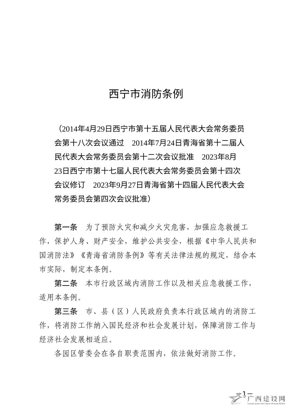 西寧市消防條例(國(guó)家法律法規(guī)數(shù)據(jù)庫(kù))