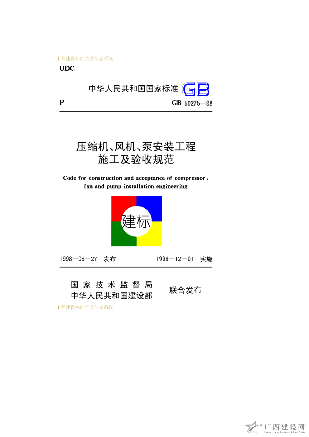 壓縮機、風機、泵安裝工程施工及驗收規范 GB50275-98