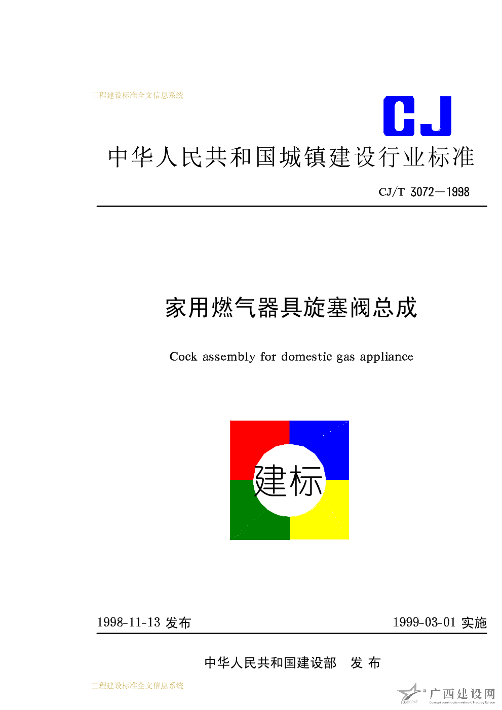 家用燃?xì)馄骶咝y總成 CJ/T3072-1998