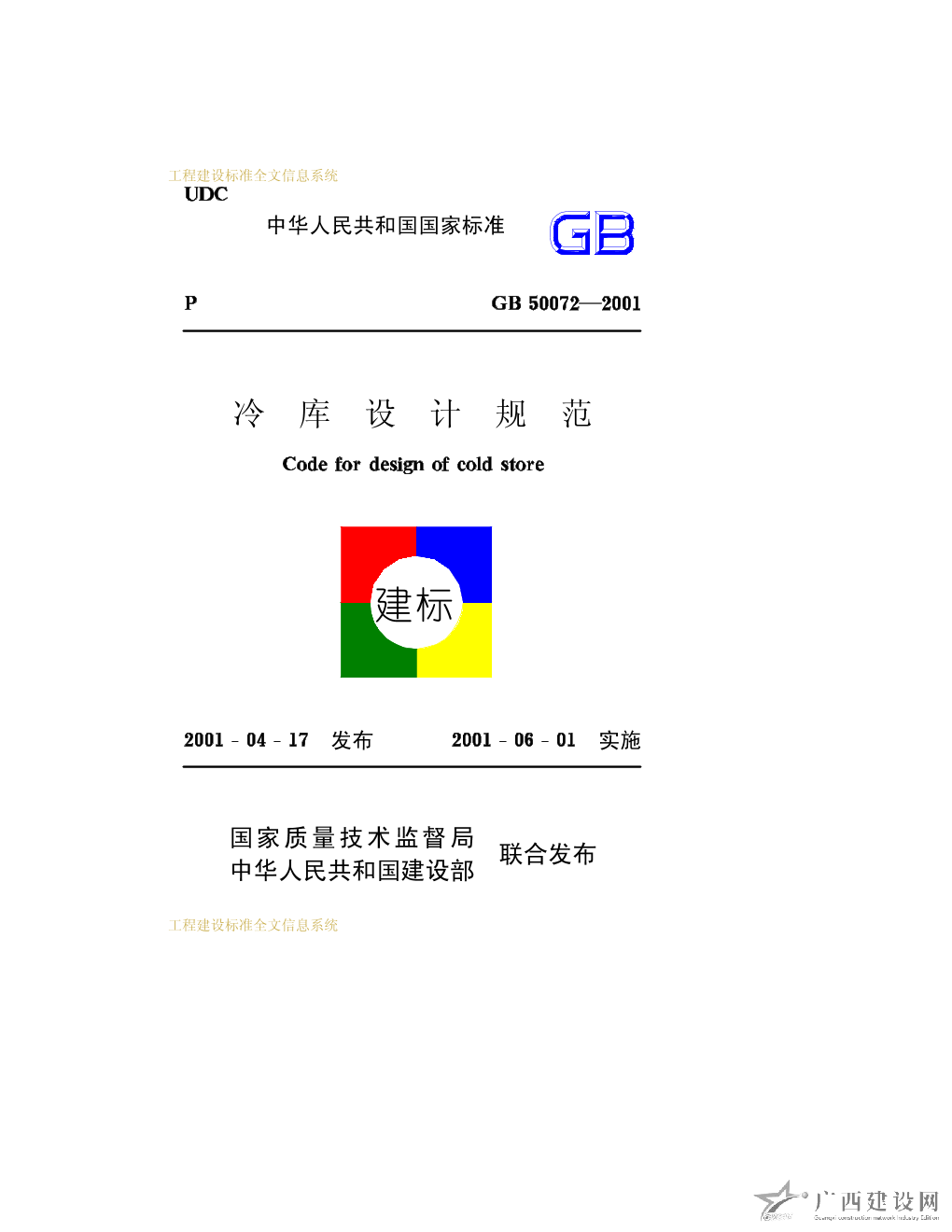 冷庫設(shè)計規(guī)范 GB50072-2001