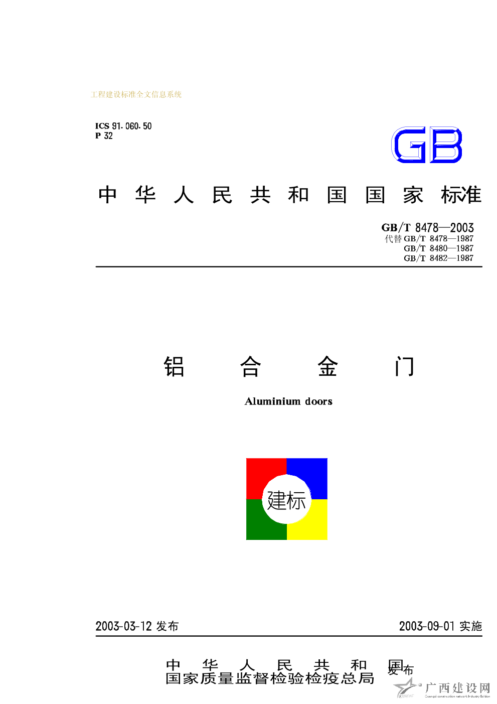 鋁合金門 GB/T8478-2003