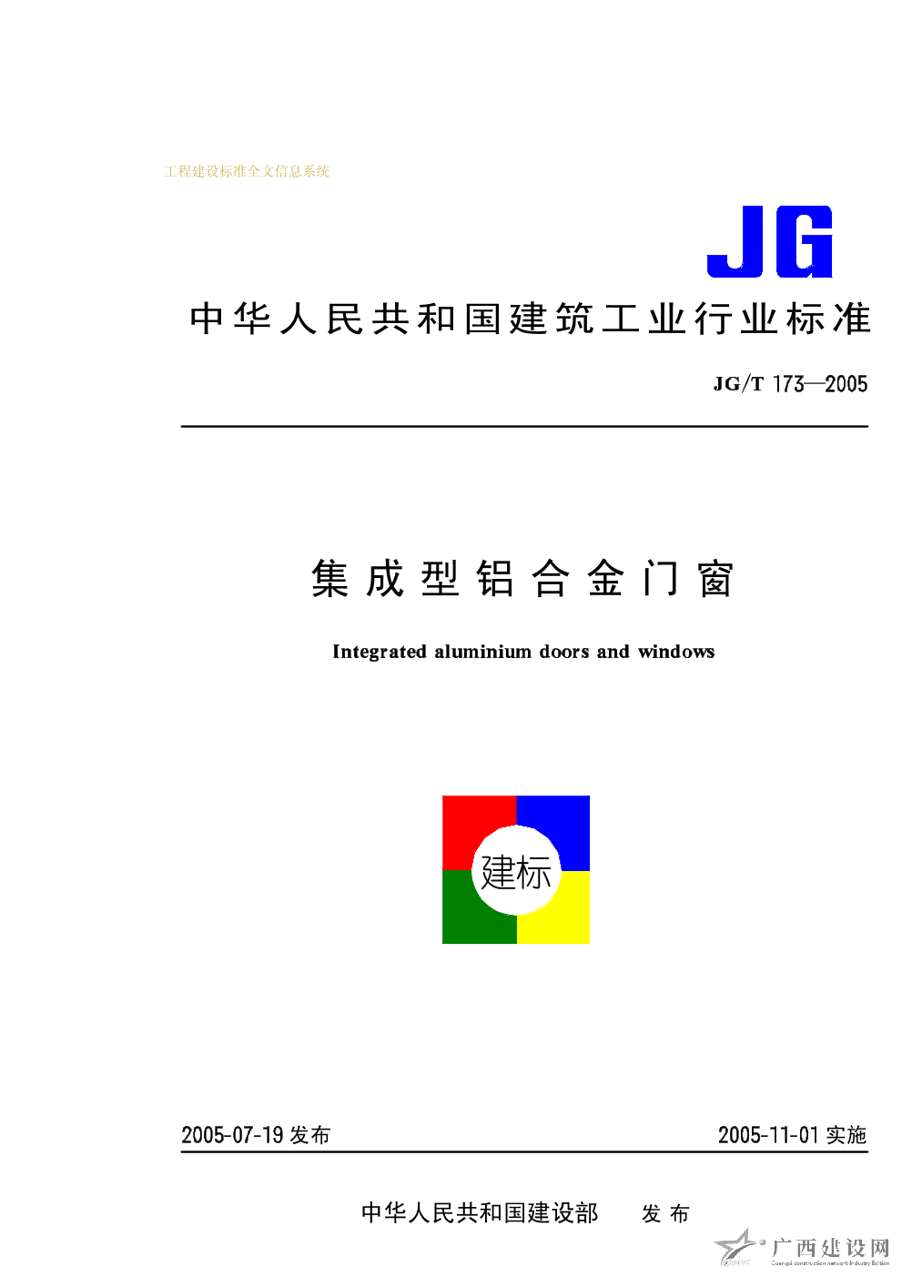 集成型鋁合金門窗 JG/T173-2005