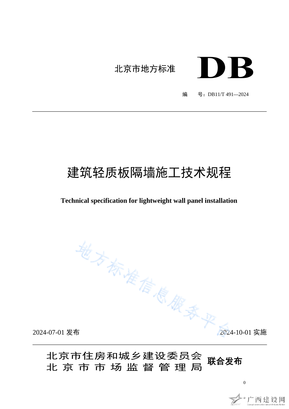 DB1 1T 491-2024建筑輕質(zhì)板隔墻施工技術(shù)規(guī)程