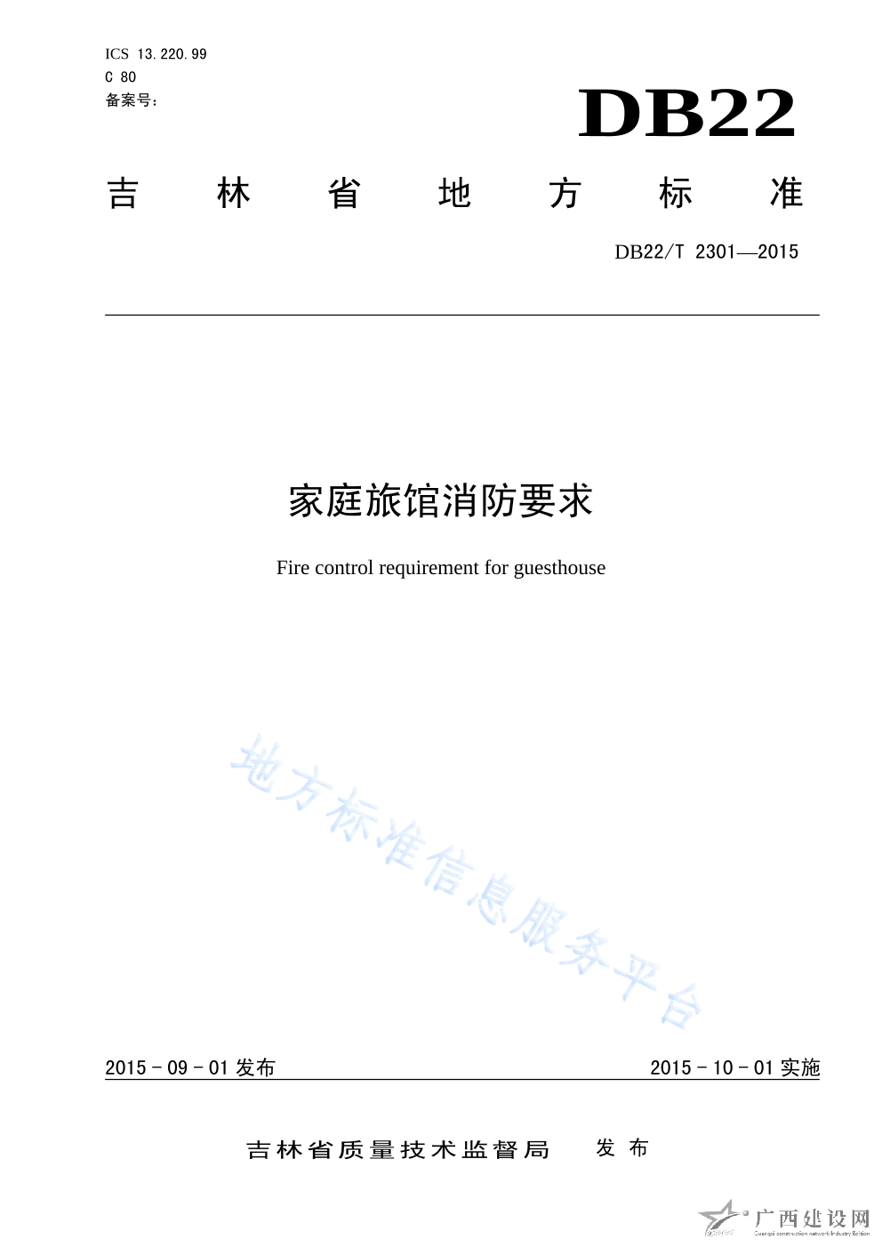 DB13 T 2639-2017家庭旅館消防安全管理規范