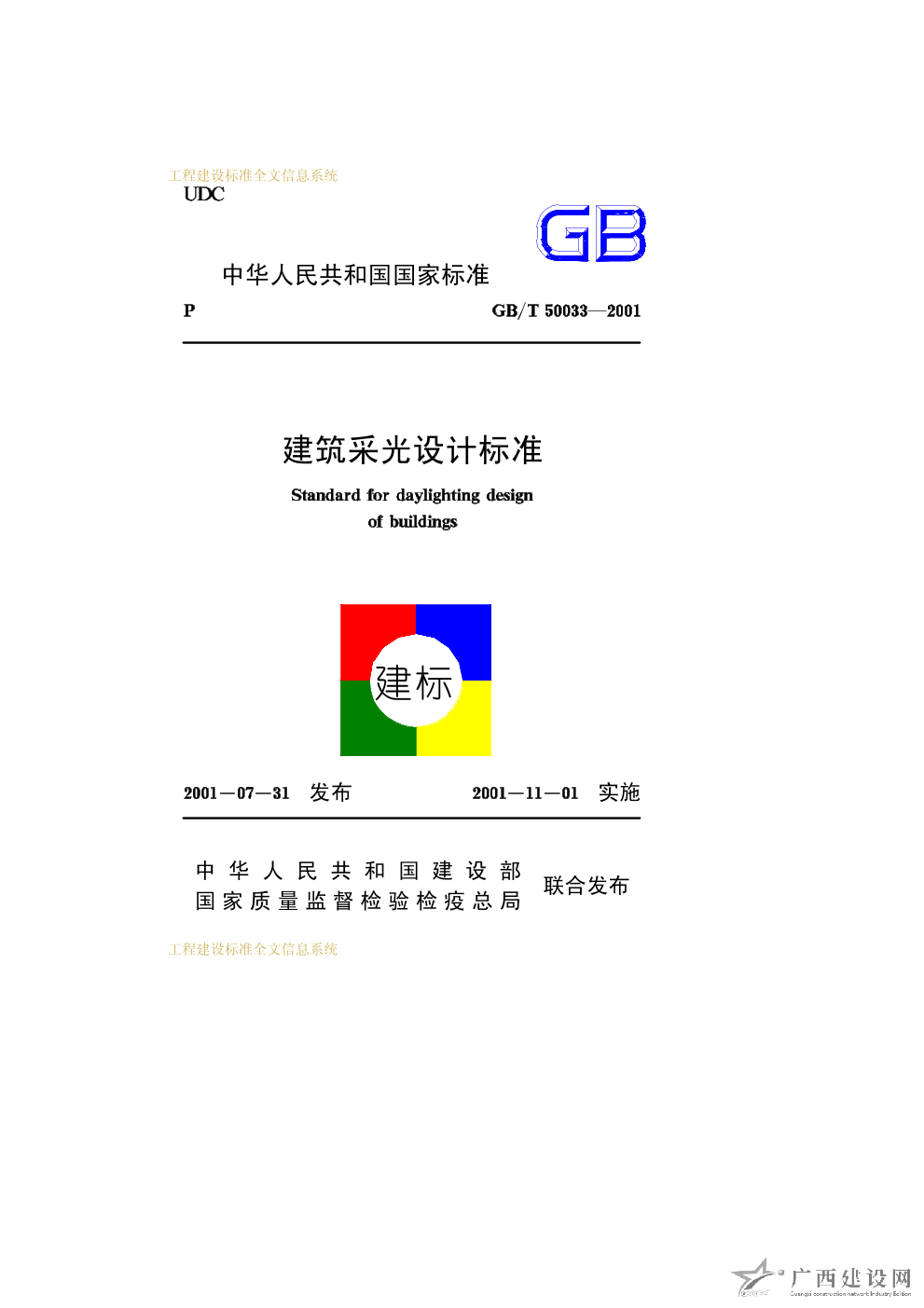 建筑采光設計標準 GB/T50033—2001