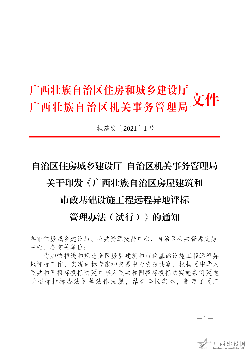 〈廣西壯族自治區(qū)房屋建筑和市政基礎(chǔ)設(shè)施工程建設(shè)項(xiàng)目招標(biāo)代理機(jī)構(gòu)誠信綜合評價管理辦法(試行)〉的通知