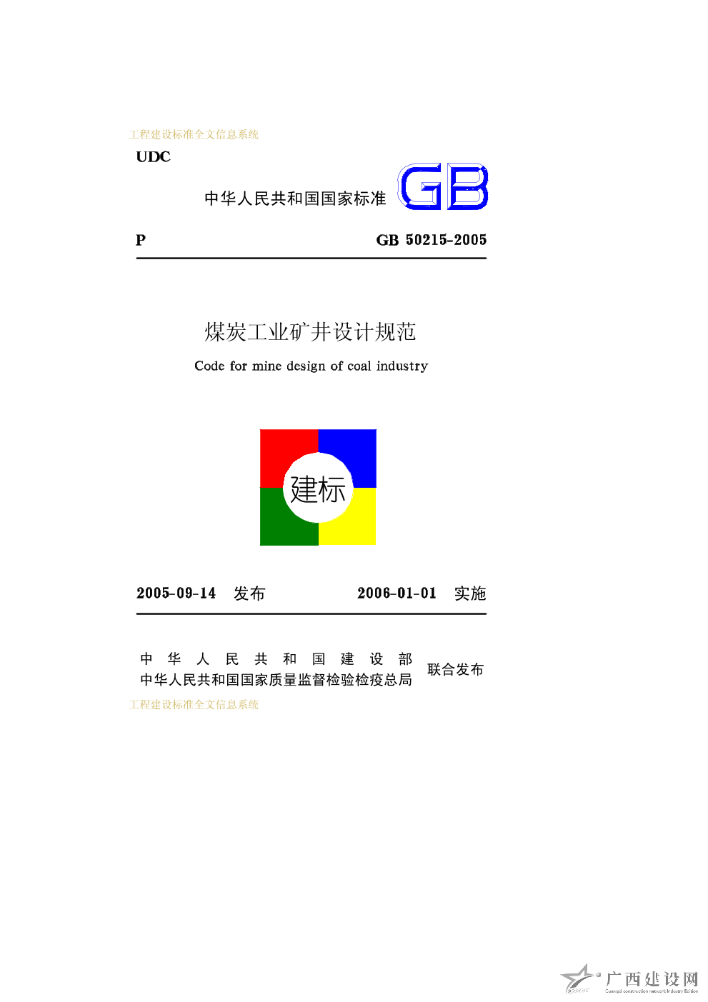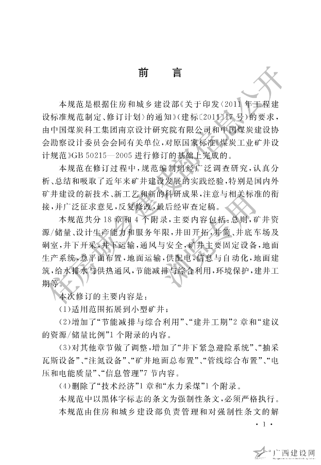 GBT 50554-2017煤炭工業礦井工程建設項目設計文件編制標準