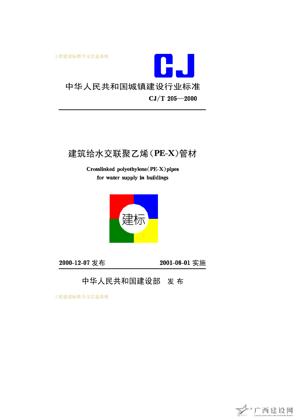 建筑給水交聯聚乙烯(PE/X)管材 CJ/T205—2000