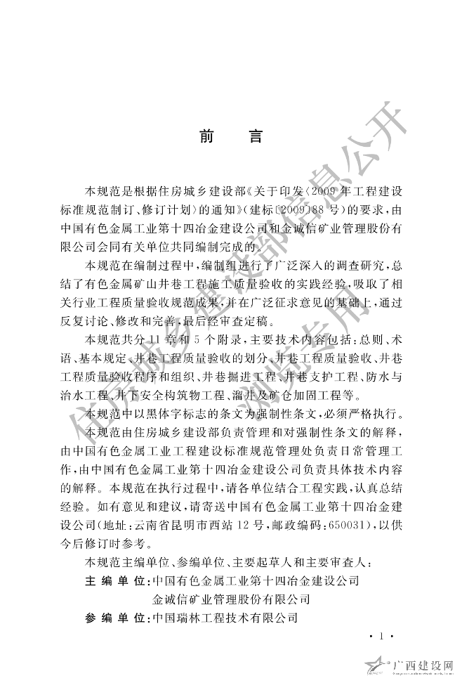 GB 50915-2013有色金屬礦山井巷工程設計規范