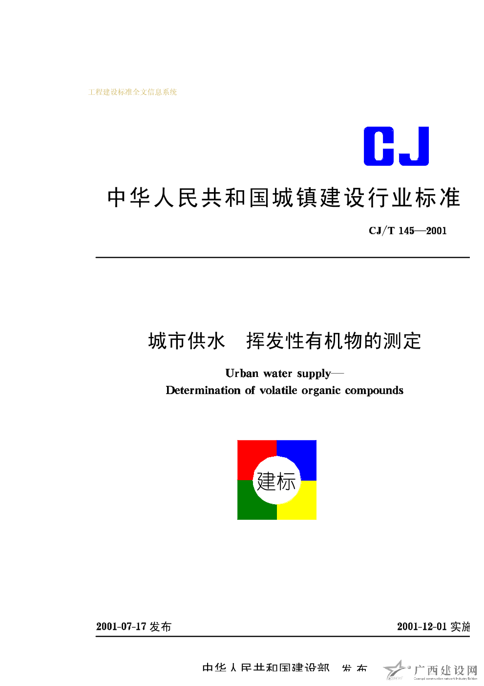 城市供水 揮發(fā)性有機(jī)物的測定 CJ/T145—2001