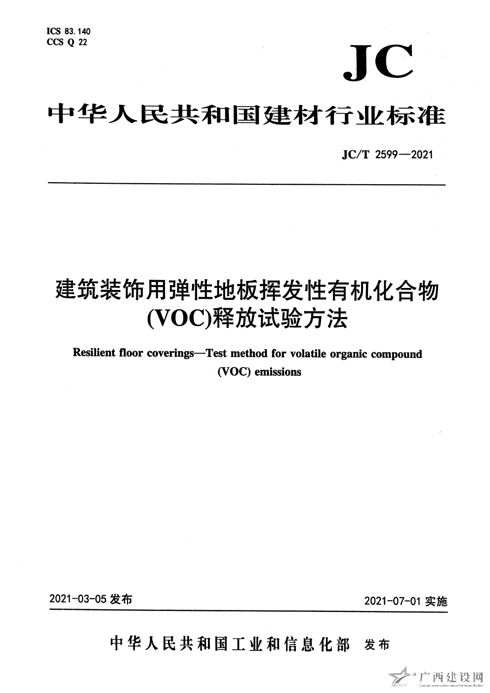 JC T 2599-2021 建筑裝飾用彈性地板揮發(fā)性有機(jī)化合物(voc)釋放試驗(yàn)方法